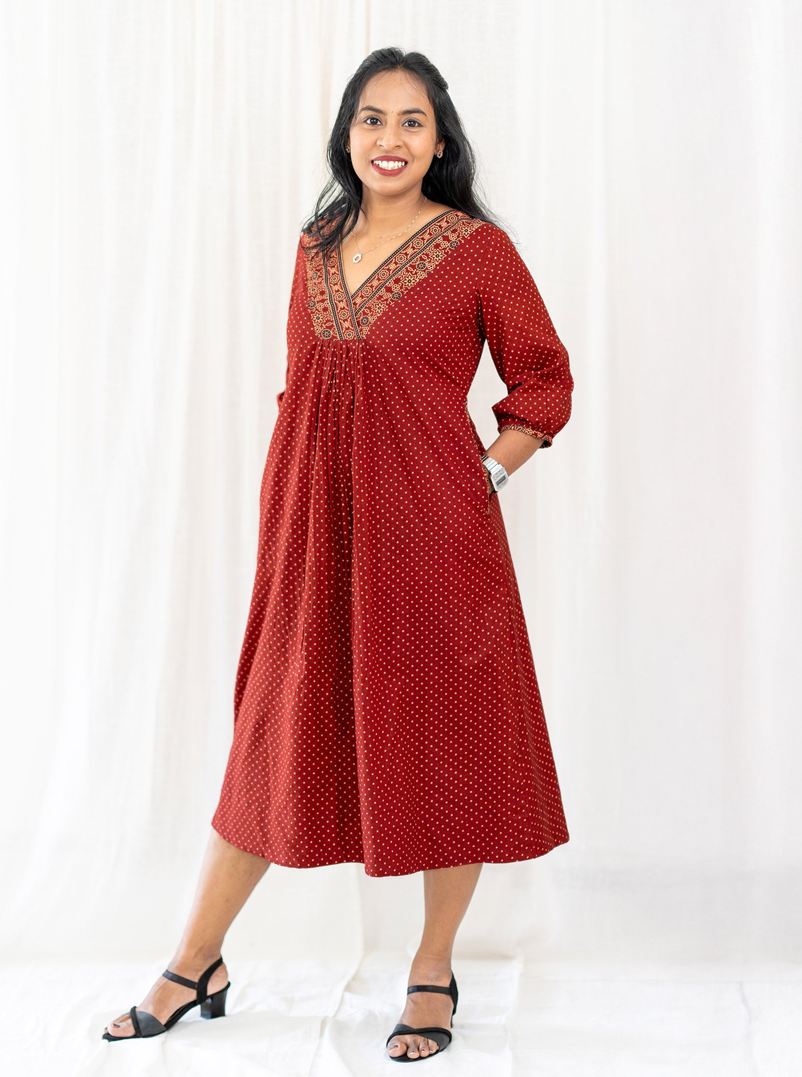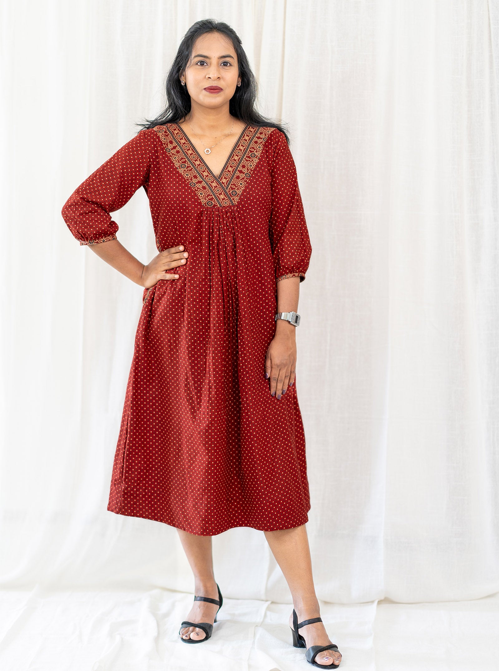 We recommend Dry Cleaning the dress/ If washing gentle hand wash using mild detergents only take care while scrubbing and soaking , Dry inside out in shade (No direct sunlight)