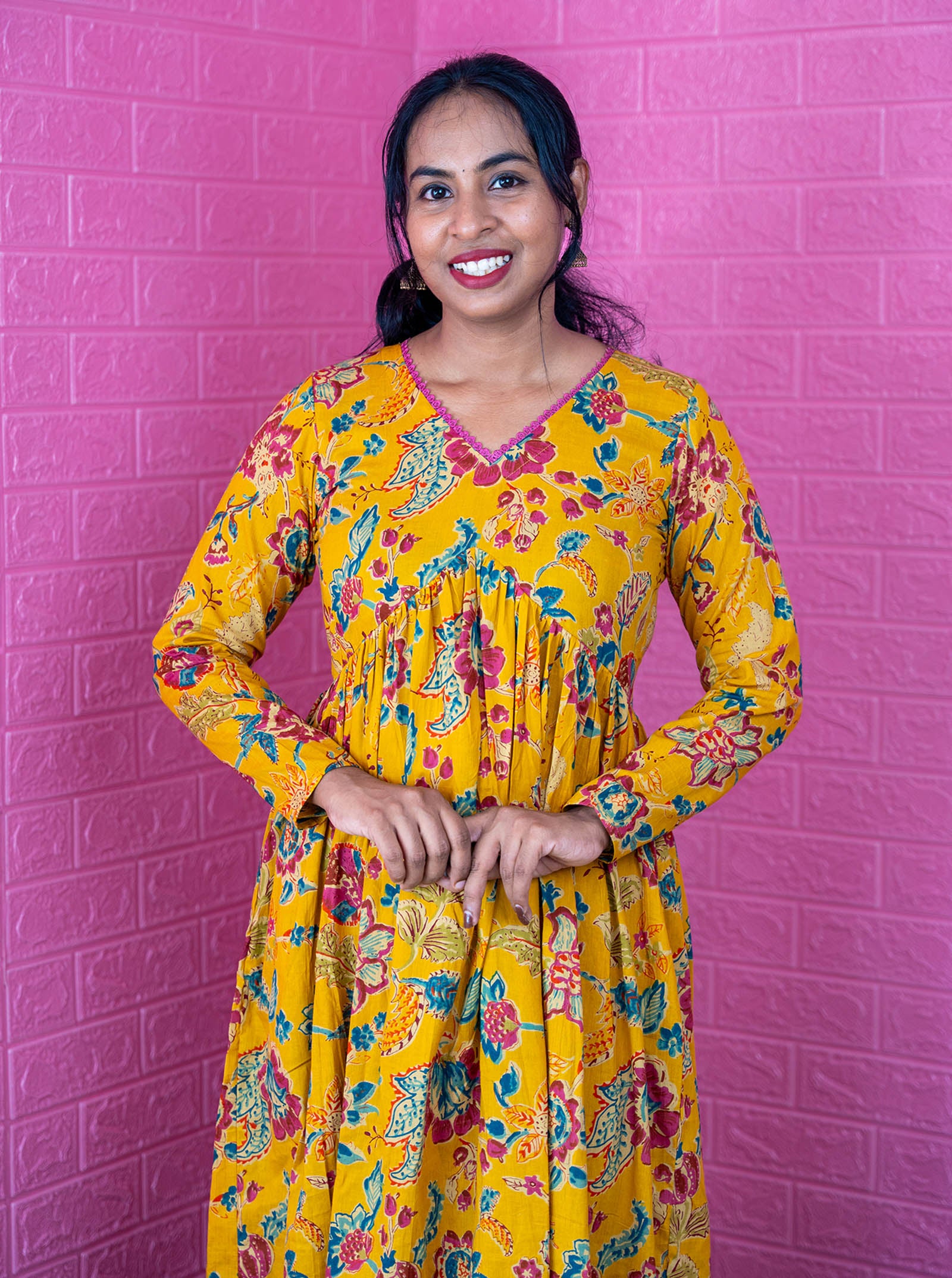We recommend Dry Cleaning the dress/ If washing gentle hand wash using mild detergents only take care while scrubbing and soaking , Dry inside out in shade (No direct sunlight)
