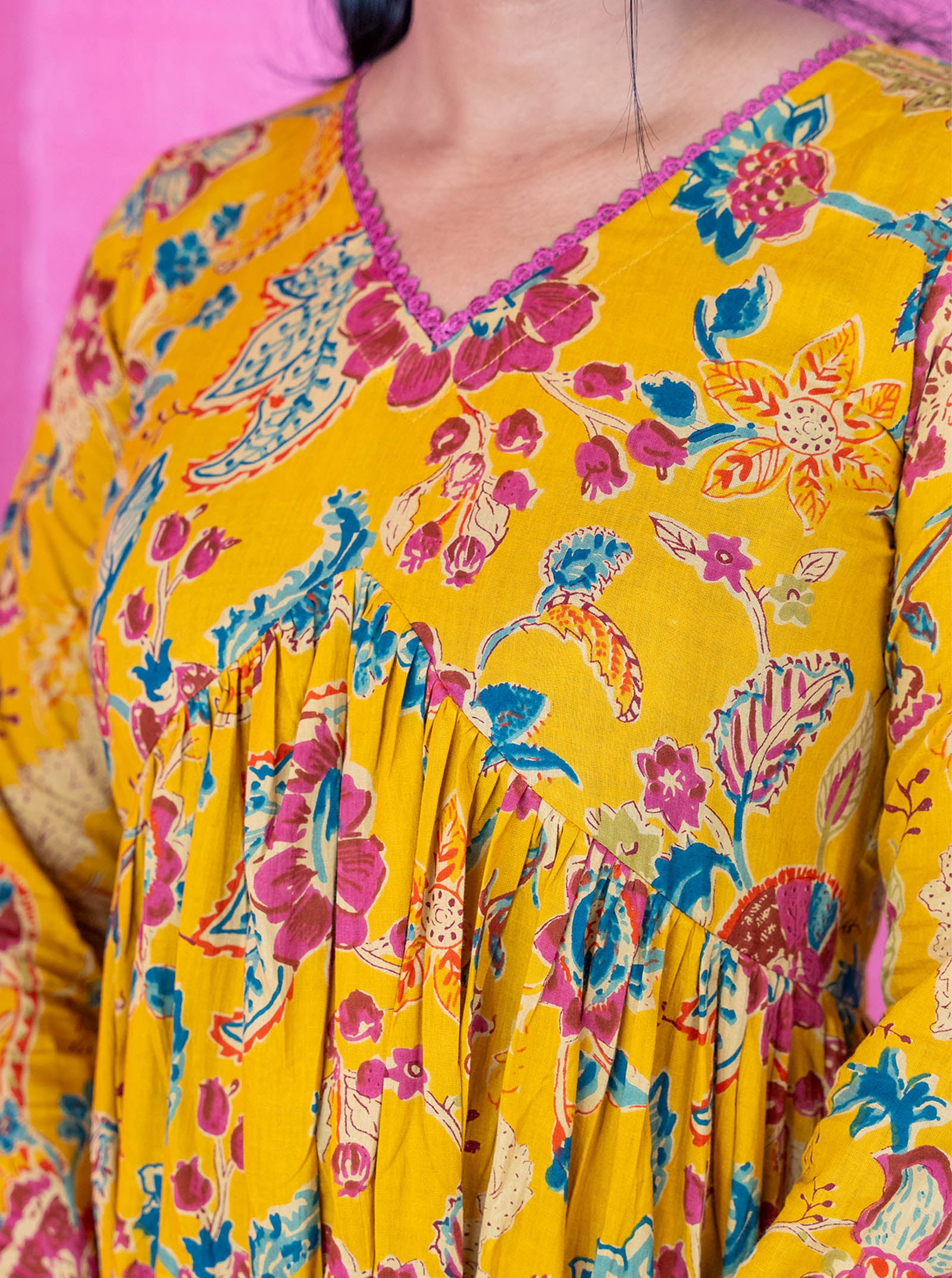 For Block Prints : Please soak in salt cold water before washing, Color may bleed a little as fabric is naturally dyed and is hand blocked printed