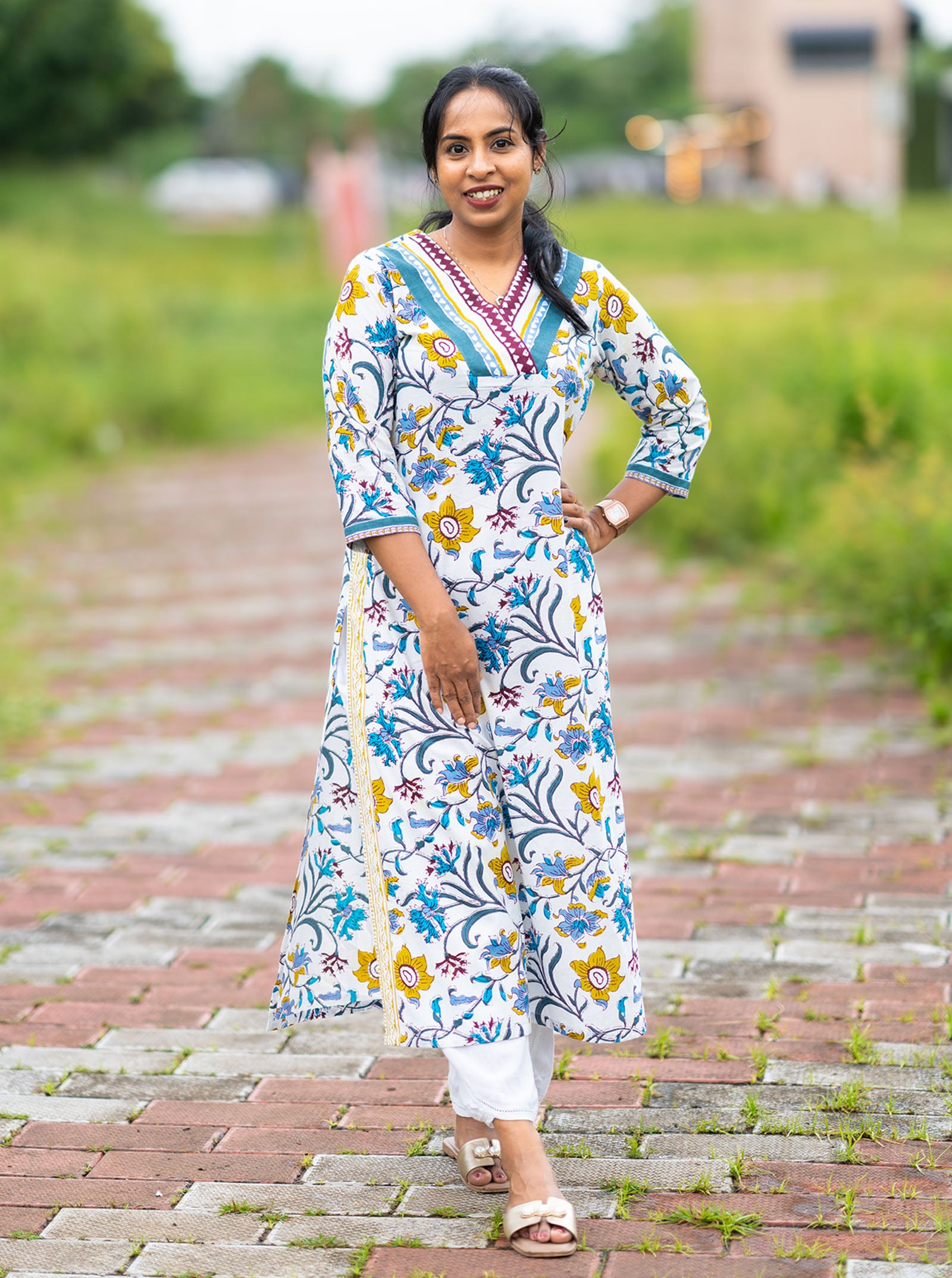 For Block Prints : Please soak in salt cold water before washing, Color may bleed a little as fabric is naturally dyed and is hand blocked printed